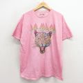 XL★古着 半袖 ロック バンド Tシャツ メンズ デフレパード コットン クルーネック ピンク 26mar13