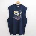 XL★古着 フルーツオブザルーム ノースリーブ ビンテージ Tシャツ メンズ 90年代 90s 地図 ニューヨーク 大きいサイズ クルーネック 紺 ネイビー 24jun28 中古