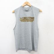 M★古着 フルーツオブザルーム ノースリーブ ビンテージ Tシャツ メンズ 90年代 90s リングルズタウン フィールドホッケー クルーネック グレー 霜降り