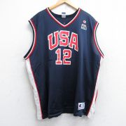 XL★古着 チャンピオン champion ノースリーブ ビンテージ Tシャツ メンズ 90年代 90s USAロゴ ALLEN 12 大きいサイズ ロング丈 メッシュ地 Vネック紺 ユニフォーム ゲームシャツ
