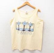 L★古着 ビンテージ タンクトップ メンズ 90年代 90s ヤシの木 コットン USA製 薄ベージュ