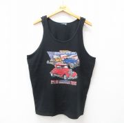 XL★古着 タンクトップ メンズ 車 ホットロッド 星条旗 クルーネック 黒