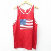 XL★古着 ビンテージ タンクトップ メンズ 80年代 80s 星条旗 メッシュ地 クルーネック 赤他