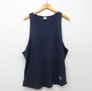 XL★古着 ラッセル ビンテージ タンクトップ メンズ 80年代 80s 無地 メッシュ地 クルーネック 紺