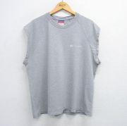 XL★古着 チャンピオン Champion ビンテージ ノースリーブ Tシャツ メンズ 00年代 00s ワンポイントロゴ 大きいサイズ コットン クルーネック グレー 霜降り