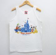 L★古着 ビンテージ タンクトップ メンズ 90年代 90s ディズニー ミッキー ドナルド プルート コットン クルーネック USA製 白