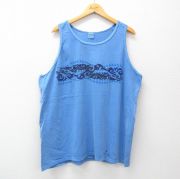 XL★古着 crazy shirts タンクトップ メンズ ハワイ コットン クルーネック 薄紺 霜降り