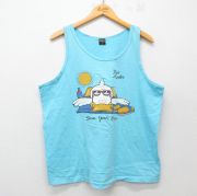 XL★古着 ビンテージ タンクトップ メンズ 80年代 80s アヒル コットン クルーネック USA製 水色