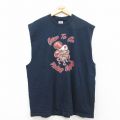 XL★古着 ノースリーブ ビンテージ Tシャツ メンズ 00年代 00s スカル タコ コットン クルーネック 紺 ネイビー 25jul03 中古