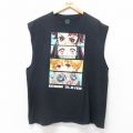 XL★古着 ノースリーブ Tシャツ メンズ アニメ 鬼滅の刃 コットン クルーネック 黒 ブラック 25jul17 中古
