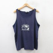 XL★古着 ビンテージ タンクトップ メンズ 00年代 00s タズ ジム 刺繍 大きいサイズ コットン クルーネック 紺