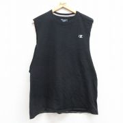 L★古着 チャンピオン Champion ノースリーブ Tシャツ メンズ ワンポイントロゴ コットン クルーネック 黒