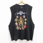 XL★古着 ノースリーブ Tシャツ メンズ ゲーム ディズニー キングダムハーツ ソラ ミッキー 大きいサイズ コットン クルーネック 黒