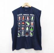 XL★古着 ノースリーブ Tシャツ メンズ ゲーム スーパーマリオブラザーズ 大きいサイズ コットン クルーネック 紺
