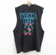XL★古着 ノースリーブ Tシャツ メンズ WANNA LICK 鳥 大きいサイズ コットン クルーネック 黒