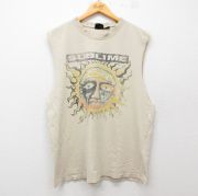XL★古着 ノースリーブ ロック バンド Tシャツ メンズ サブライム コットン クルーネック ベージュ