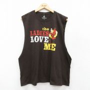 XL★古着 ノースリーブ Tシャツ メンズ ディズニー 美女と野獣 ガストン 大きいサイズ コットン クルーネック 茶