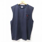 M★古着 ラルフローレン ノースリーブ ブランド Tシャツ メンズ ワンポイントロゴ コットン クルーネック 紺