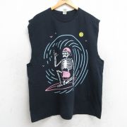 XL★古着 ノースリーブ Tシャツ メンズ モンスター 大きいサイズ クルーネック 黒