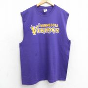 XL★古着 フルーツオブザルーム ノースリーブ ビンテージ Tシャツ メンズ 00年代 00s NFL ミネソタバイキングス クルーネック 紫 アメフト スーパーボウル