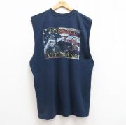 XL★古着 ノースリーブ Tシャツ メンズ 星条旗 クルーネック USA製 紺