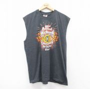 L★古着 ハーレーダビッドソン ノースリーブ ビンテージ Tシャツ メンズ 00年代 00s ミシガン バイク クルーネック USA製 濃グレー 霜降り
