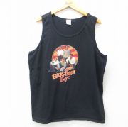 XL★古着 ビンテージ タンクトップ メンズ 00年代 00s バイク 大きいサイズ コットン クルーネック 黒