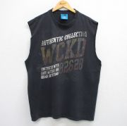 XL★古着 ノースリーブ Tシャツ メンズ WCKD 大きいサイズ コットン クルーネック 黒