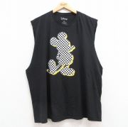 XL★古着 ノースリーブ Tシャツ メンズ ディズニー ミッキー 大きいサイズ コットン クルーネック 黒