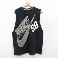 XL★古着 ナイキ NIKE ノースリーブ Tシャツ メンズ ワンポイントロゴ センタースウォッシュ コットン クルーネック 黒