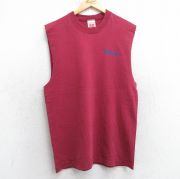 M★古着 ウィルソン ノースリーブ ビンテージ Tシャツ メンズ 90年代 90s ワンポイントロゴ コットン クルーネック USA製 エンジ