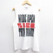 M★古着 ノースリーブ ビンテージ Tシャツ メンズ 90年代 90s WIDE OPEN コットン クルーネック USA製 白