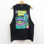 M★古着 ノースリーブ Tシャツ メンズ スターウォーズ マンダロリアン コットン クルーネック 黒