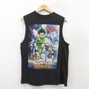 M★古着 ノースリーブ Tシャツ メンズ アニメ ハンターハンター コットン クルーネック 黒