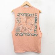 M★古着 ノースリーブ Tシャツ メンズ アニメ ポケットモンスター ヒトカゲ リザード リザードン コットン クルーネック オレンジ系