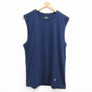 M★古着 ラルフローレン ノースリーブ ブランド Tシャツ メンズ ワンポイントロゴ コットン クルーネック 紺