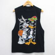 M★古着 ノースリーブ Tシャツ メンズ ルーニーテューンズ バッグスバニー ダフィーダック スペースジャム コットン クルーネック 黒