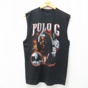 M★古着 ノースリーブ ヒップホップ ラップ Tシャツ メンズ ポロG コットン クルーネック 黒