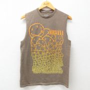 M★古着 ノースリーブ ロック バンド Tシャツ メンズ ニルバーナ ニルヴァーナ コットン クルーネック 茶系