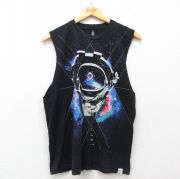 M★古着 ノースリーブ Tシャツ メンズ 宇宙 コットン クルーネック USA製 黒