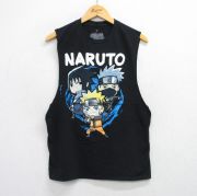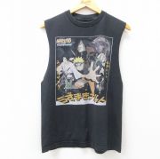 M★古着 ノースリーブ Tシャツ メンズ アニメ ナルト疾風伝 コットン クルーネック 黒