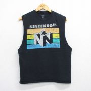 M★古着 ノースリーブ Tシャツ メンズ ゲーム ニンテンドー64 コットン クルーネック 黒