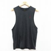 M★古着 ラルフローレン ノースリーブ ブランド Tシャツ メンズ ワンポイントロゴ コットン クルーネック 黒 霜降り