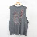 L★古着 ノースリーブ Tシャツ メンズ アニメ ポパイ クルーネック グレー 霜降り