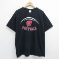 XL★古着 半袖 ビンテージ Tシャツ メンズ 00年代 00s ウィスコンシン 大学 アメフト コットン クルーネック 黒 ブラック 24feb14 中古