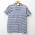 M★古着 アリゾナジーンズ 半袖 ビンテージ Tシャツ メンズ 00年代 00s ビッグロゴ 刺繍 クルーネック 紺他 ネイビー ボーダー 24feb21 中古
