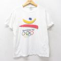 L★古着 半袖 ビンテージ Tシャツ メンズ 90年代 90s バルセロナオリンピック クルーネック 白 ホワイト 24feb23 中古