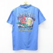 L★古着 半袖 ビンテージ Tシャツ メンズ 90年代 90s 魚 コットン クルーネック 青