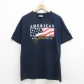 L★古着 半袖 ビンテージ Tシャツ メンズ 00年代 00s 星条旗 コットン クルーネック USA製 濃紺