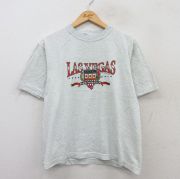 L★古着 半袖 ビンテージ Tシャツ メンズ 90年代 90s ラスベガス ネバダ クルーネック 薄グレー 霜降り